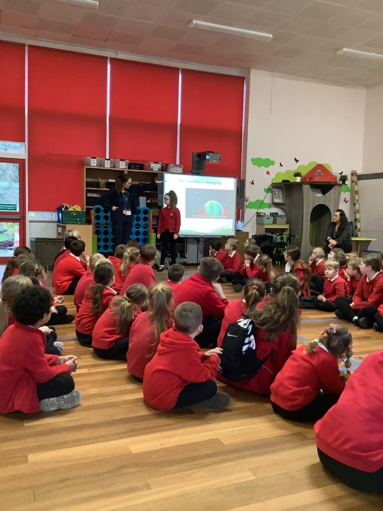 Today, we welcomed Tori from OASES into school to lead a whole‑school assembly all about climate change. She helped us learn what climate change means, how it affects our world and why it’s important to take care of our planet. We discovered simple things we can all do—like saving energy, recycling and looking after nature—to help make a big difference for the future.