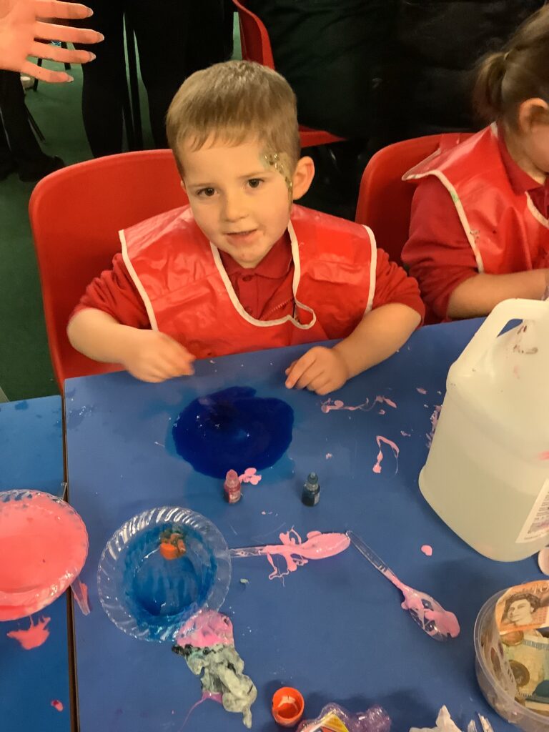 Class 2 had such a fun afternoon, launching our new topic. We got messy and explored lots of different textures. We seen how many different ways we could use paint, talked about the texture of jelly and foam and played with sand and flour. We talked about the smells, feel and texture of each one and loved getting messy!