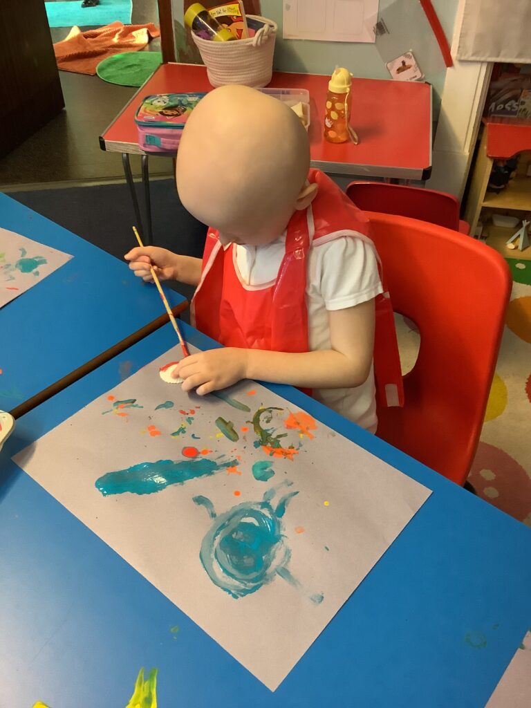 Today we have launched our new topic ‘Beachcombers’. For our topic engagement, we have each painted our very own seashell. We talked about the different patterns we might find on a shell and had a look at some examples. We then used different colours to create a design of our choice.