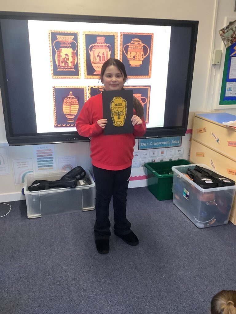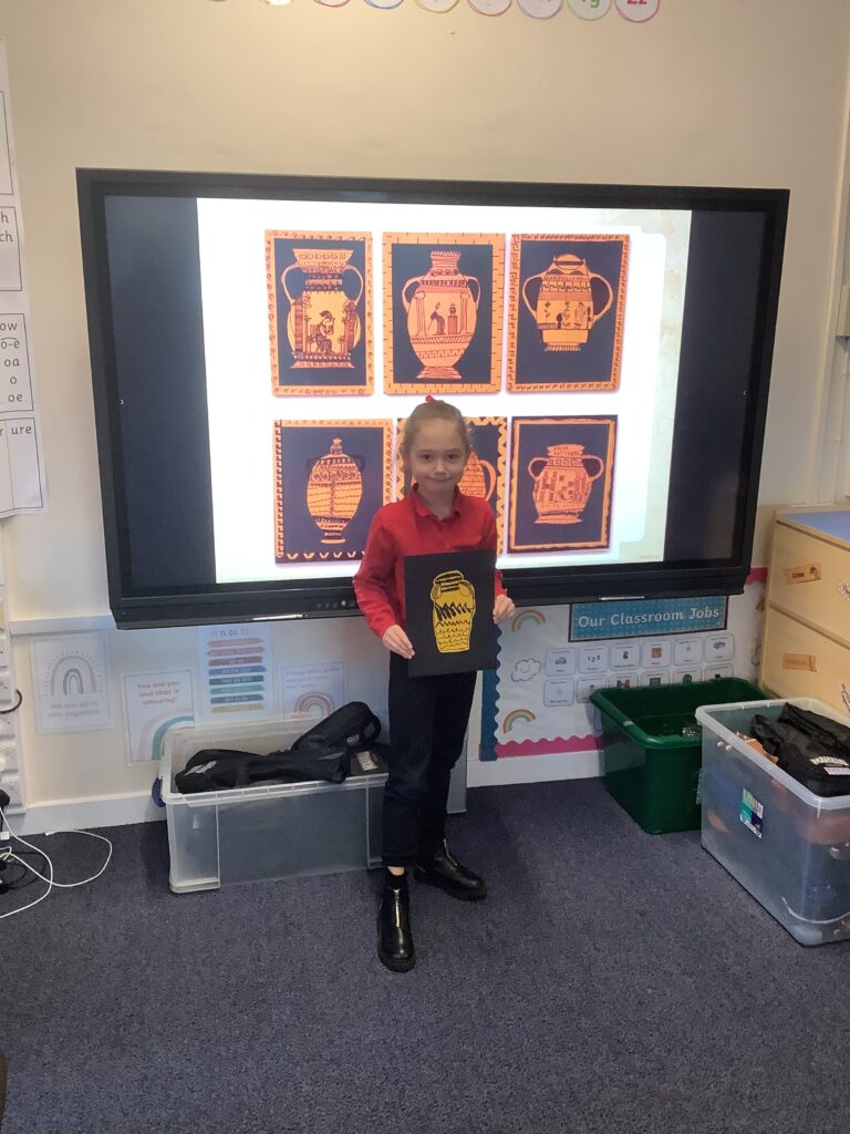 For art we have created a range of Greek vases. We worked hard to create intricate designs for our vases and focused on making sure our designs were symmetrical.