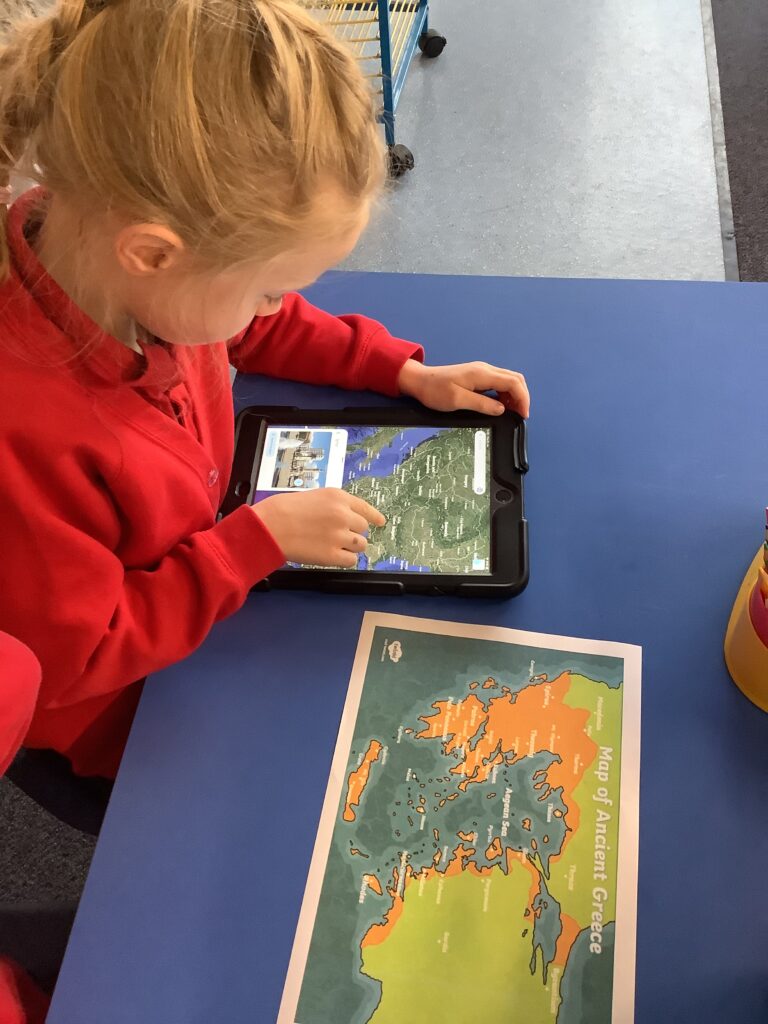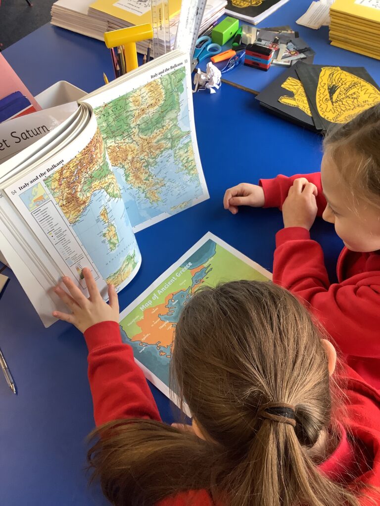 In History and Geography we have been learning all about Greece. In Geography we compared Ancient Greece to modern Greece using atlas’s and Google Earth. In History we learned all about the olympics and looked at secondary sources to find out lots of information.