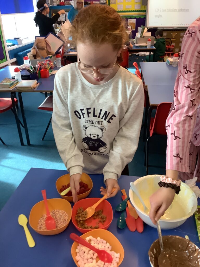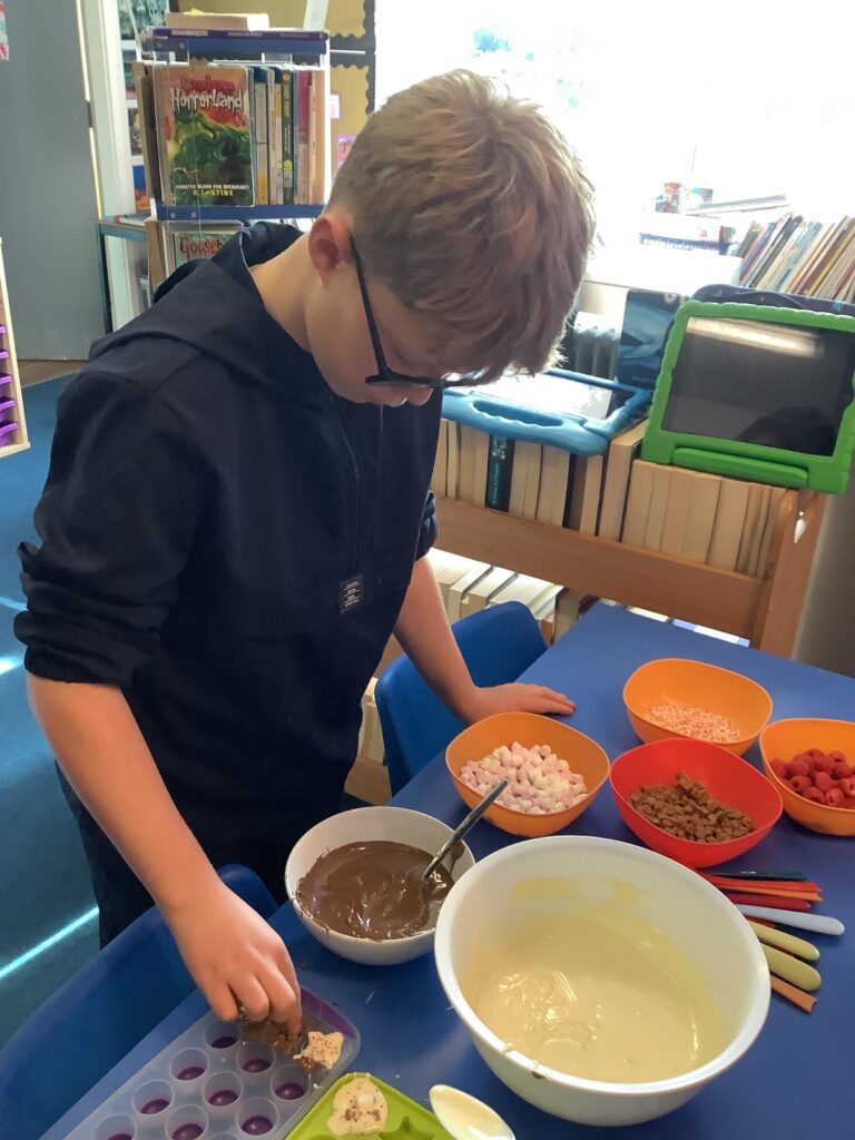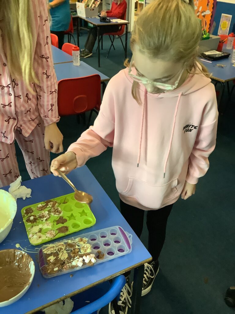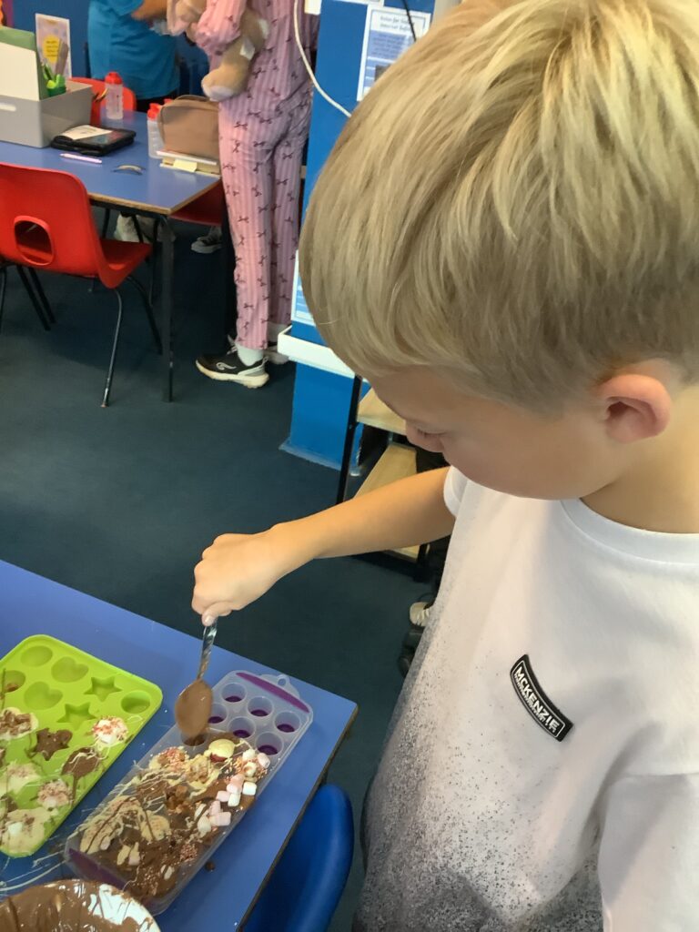 In DT we have designed and made our very own chocolate bar. We thought carefully about the ingredients we would like to include. We then melted the chocolate carefully and added in all the lovely ingredients before popping them in the fridge. We are excited to eat them!