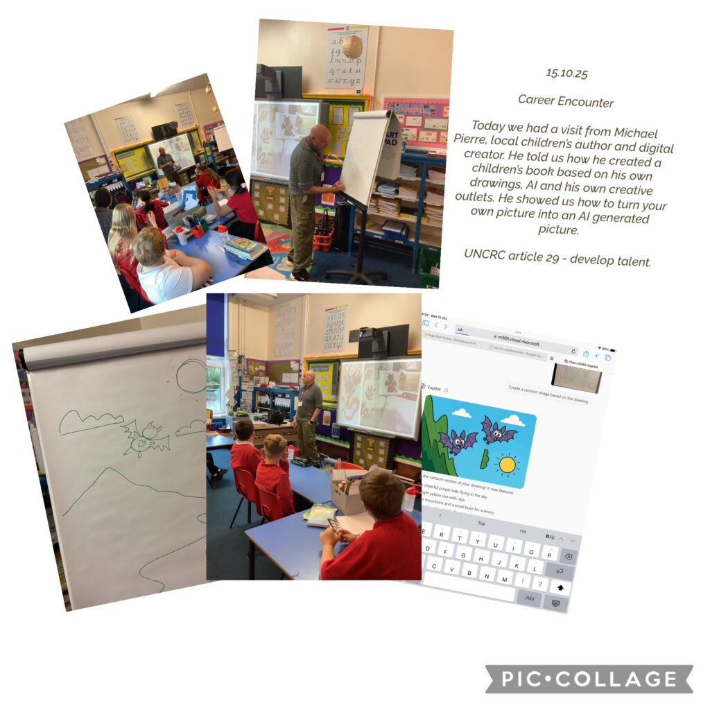 A big thank you to Michael Pierre for talking to class 5 all about how he has recently published a children’s book. He told us all about his career journey and how he uses computing to make books.