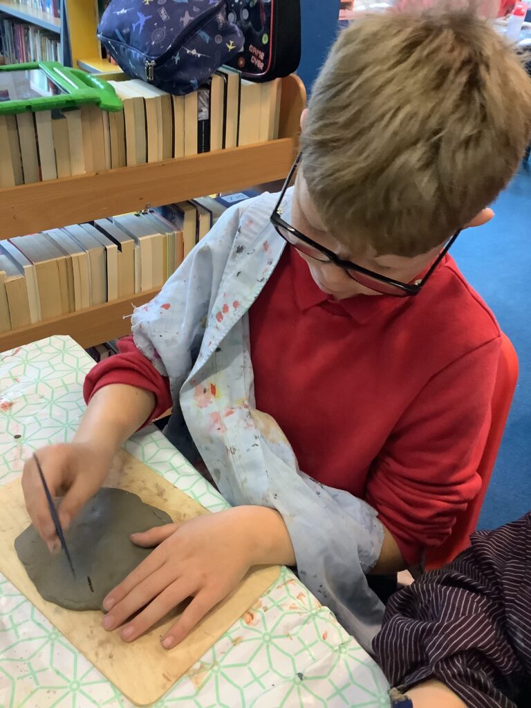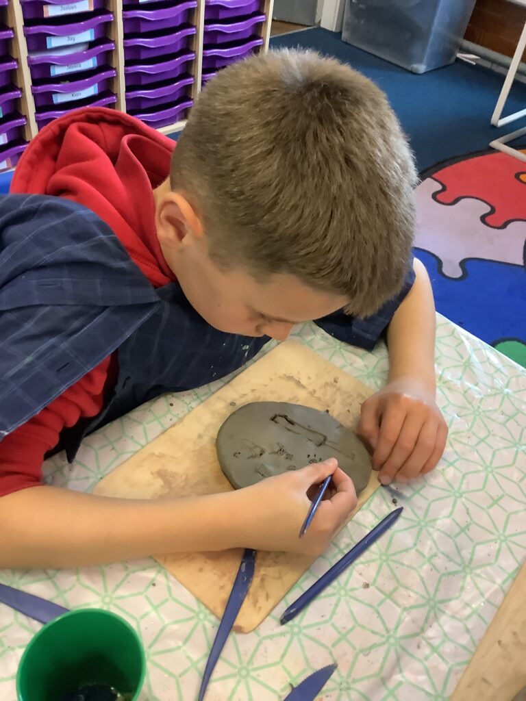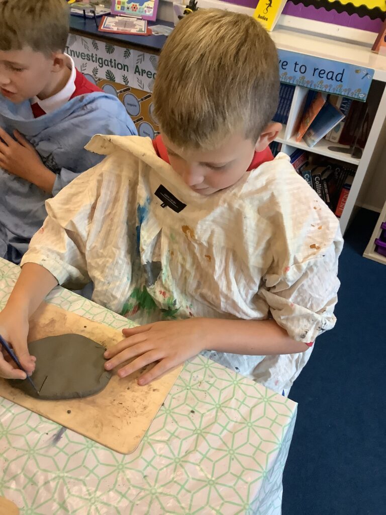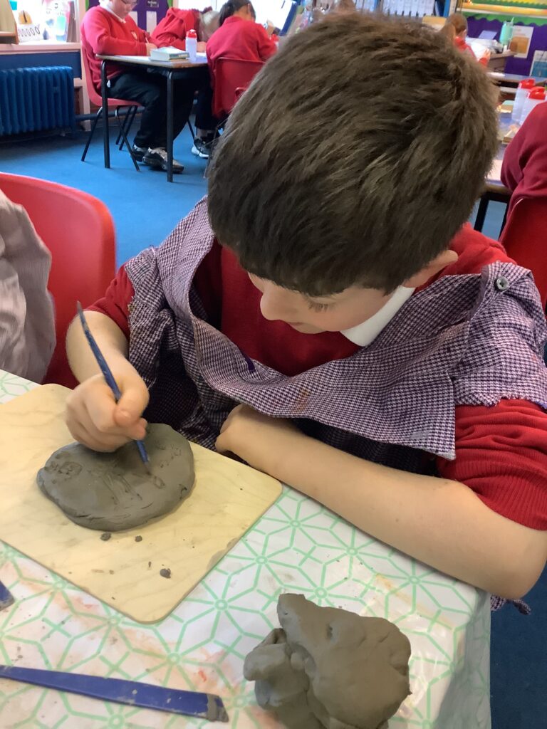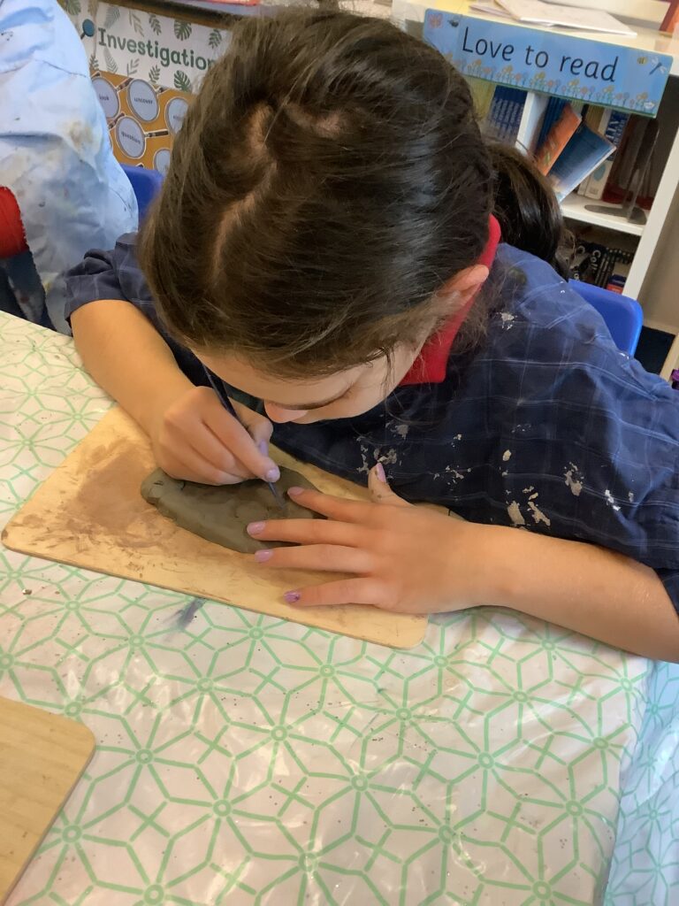 Today we made clay tablets to celebrate the end of our Hola Mexico topic. We took inspiration from the Mayan Civilization art work and craved symbols that we felt represented ourselves.