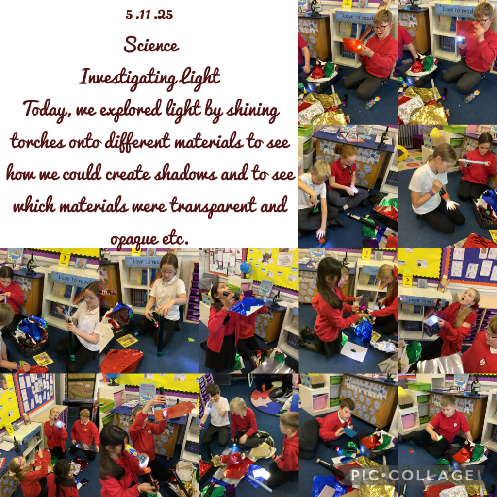 We have enjoyed our mini project on light this week. We enjoyed using the resources to investigate the way in which different materials react to light sources.