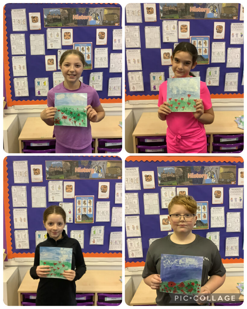 We have worked hard in art this week to create amazing poppy art for remembrance day. You can view our work on the fence outside of school. We are proud of the work created and the understanding of the importance of poppy day.